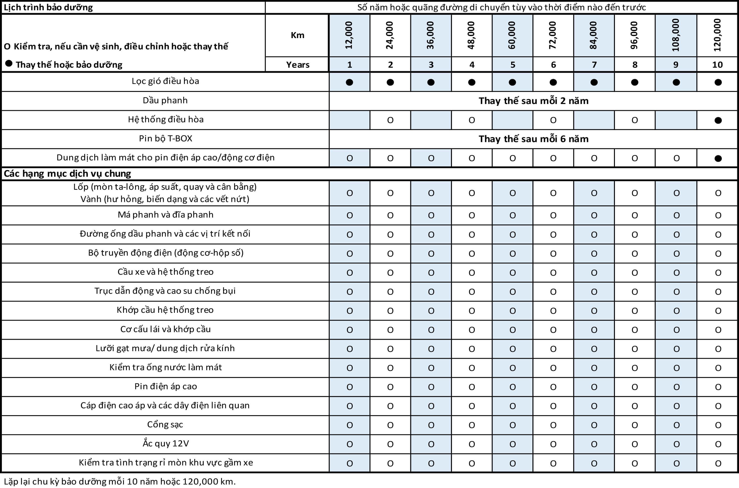 thay thế sau mỗi 56.000Km hoặc 36 tháng